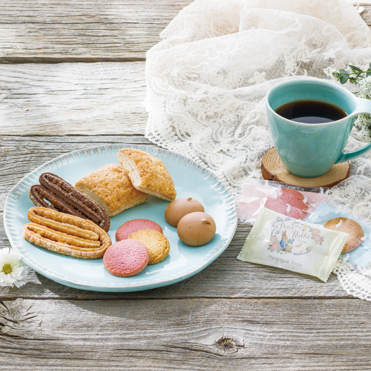 ピーターラビットといっしょに素敵なカフェタイムを。クッキーやドリップコーヒーをセットしたギフトです。