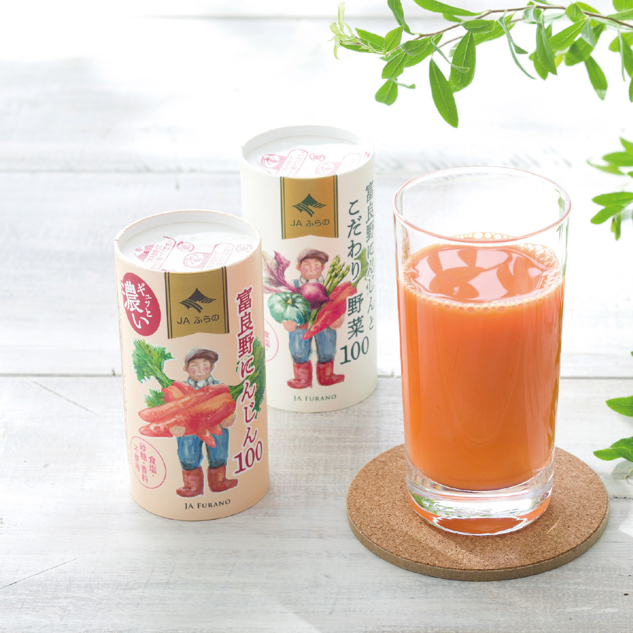 甘さとコクが自慢の富良野にんじんを搾ったにんじんジュースと、北海道産かぼちゃ、ビーツ、国産アスパラガスを加えたにんじんミックスジュースの詰合せ。人参、野菜のエグ味がなく、フルーティーな味わいのジュースです。