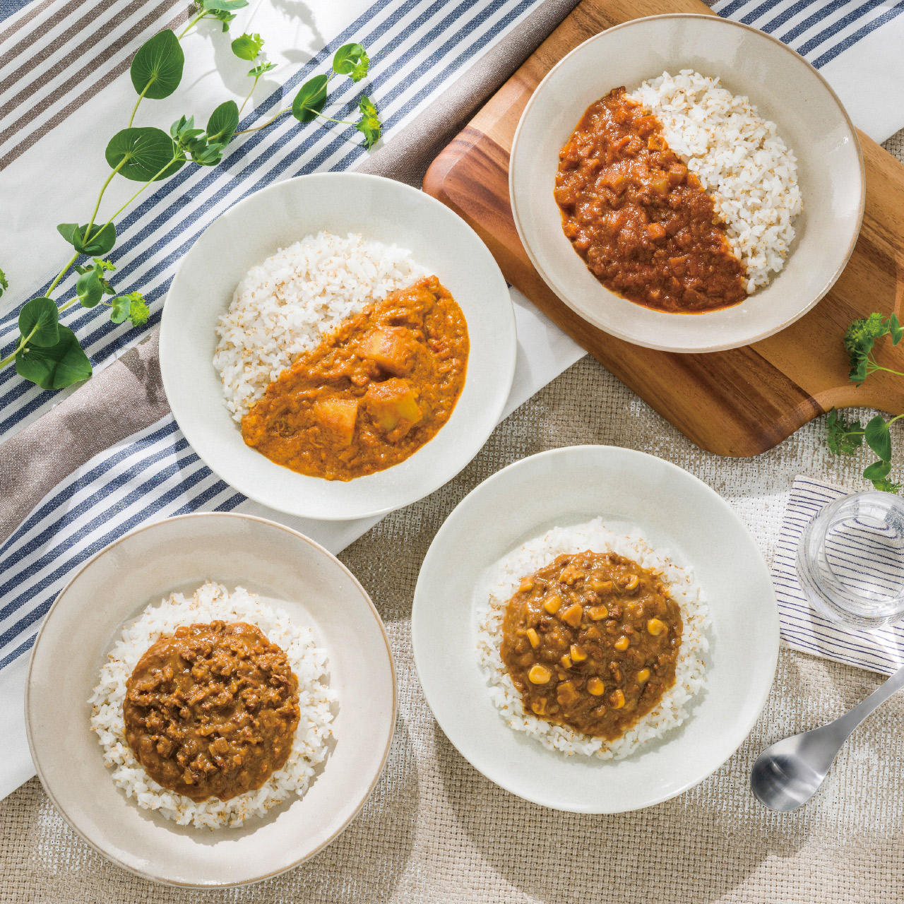 スープストックトーキョーこだわりのレトルトカレーセットです。りんごやかぼちゃ、レーズンなどの甘さとスパイスが香る「とうもろこしの辛くないキーマカレー」や、くわい、こんにゃくなどの食感が楽しい「根菜と生姜の和風カレー」など7種類のレトルトカレーをお楽しみいただけます。
