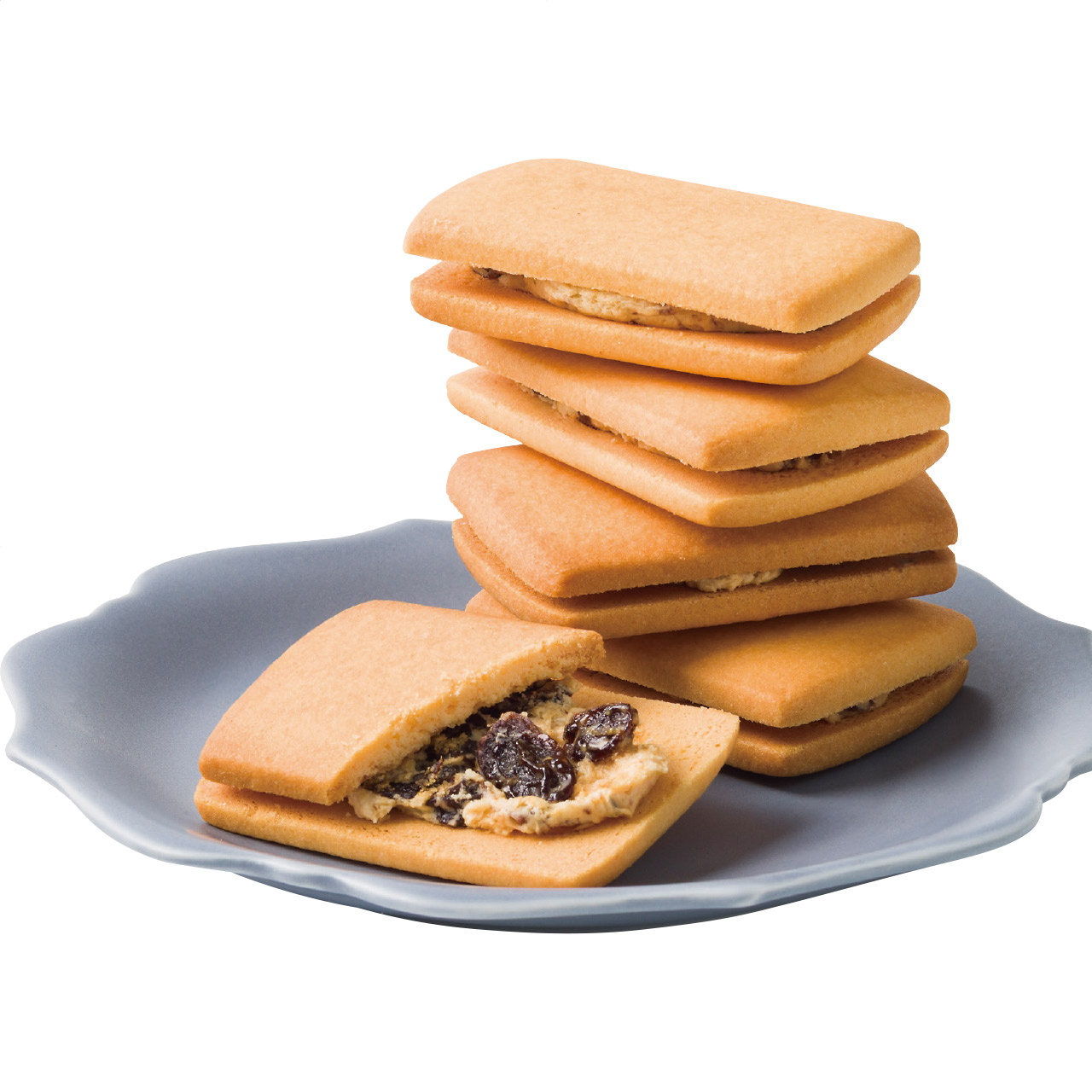 じっくり香り豊かなラム酒に漬けたレーズンを、上品な甘さのクリームと一緒に、厚めのクッキーにサンドしました。