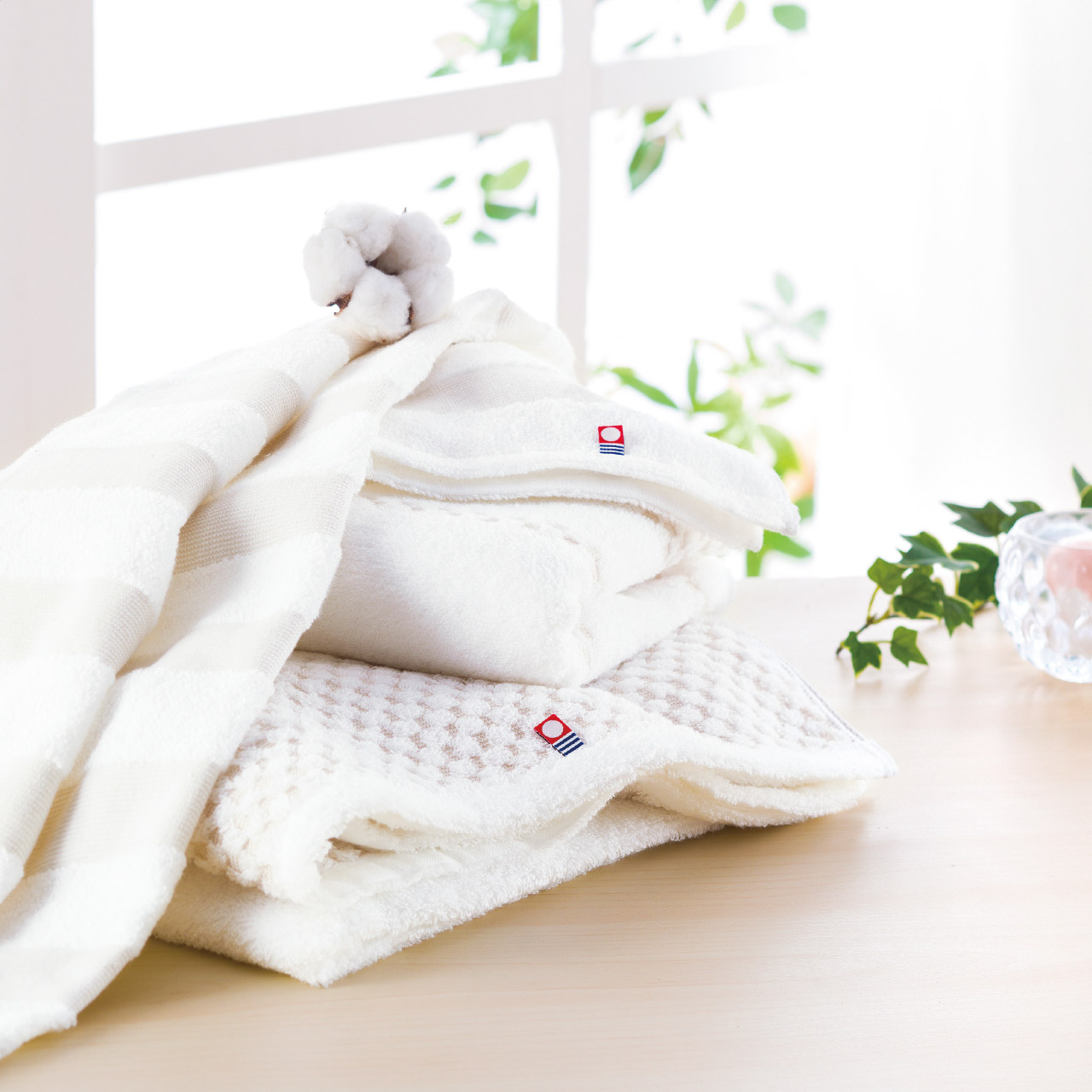 糸を撚る回数を減らすことによりふっくらした風合いのタオル。