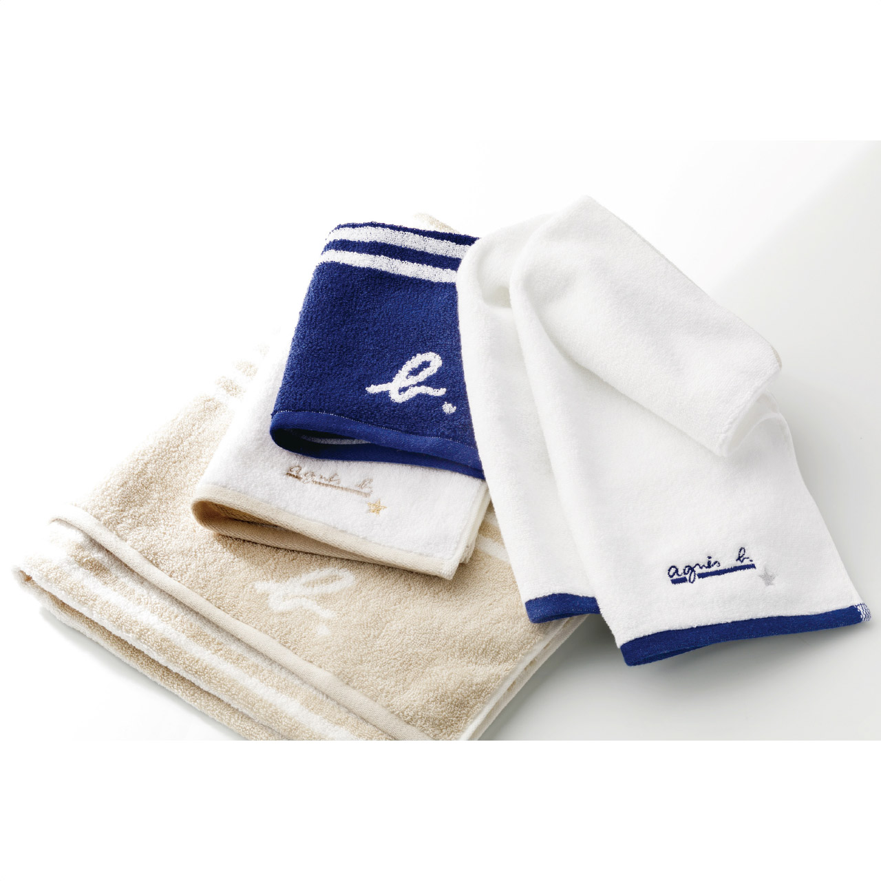 フレンチカジュアルを代表するパリのブランド、アニエスベーは流行に捉われることなく、着心地の良さやカッティングにこだわった独自のスタイルで世界中の人に長く愛されています。洗練されたベーシック「フレンチシック」スタイルを代表するアニエスベー。象徴的なアイテムの一つであるボダーにb.ロゴのジャガードタオルと、ブランドロゴ刺繍がポイントのシンプルなタオルを合わせました。シーズンや年齢・性別を問わずお使いいただきやすいギフトです。