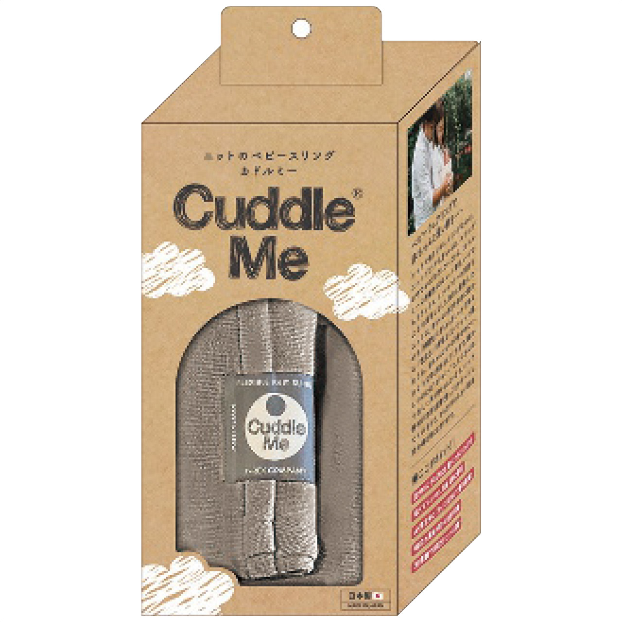 赤ちゃんは、スリングの中でものびのびしたい。だから、カドルミーは伸縮性のあるニット素材。いつでもリラックス、ストレスフリーのキモチよさを実現しました。ニットの幅広ベルトが肩や腰への負担を軽減。ママにもやさしいスリングです。