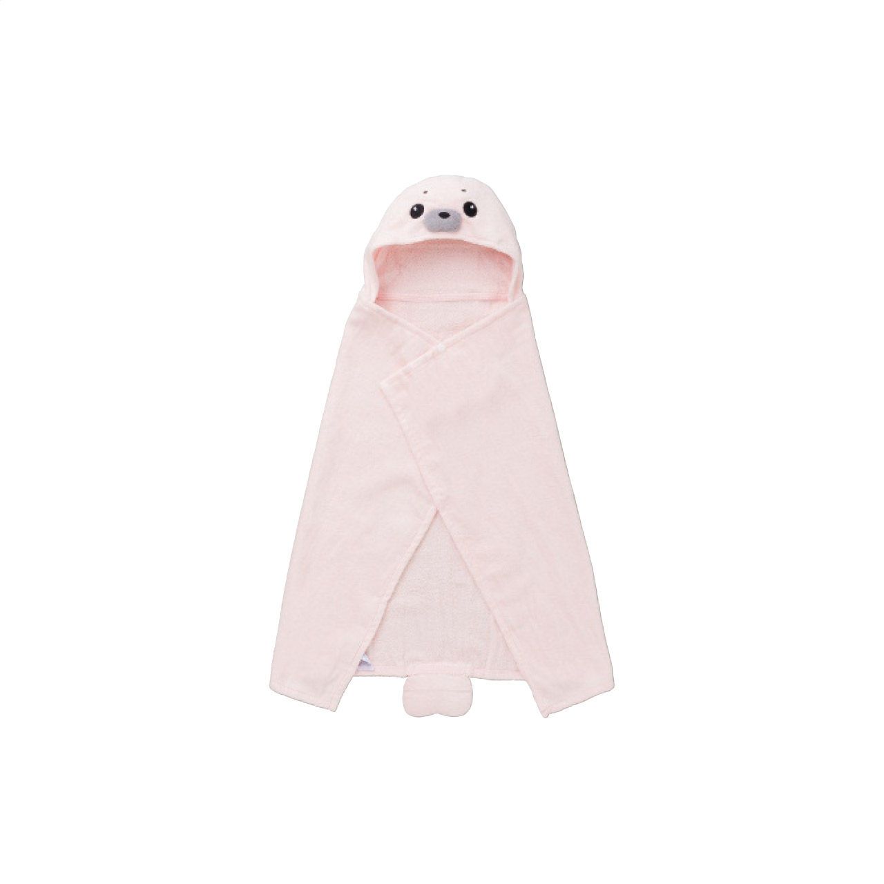 思わずぎゅっと抱きしめたくなるやさしさと、使うほどに深まる愛着。“このタオルじゃなきゃイヤ!”そんな声が聞こえてくるかもしれません。お子さまが笑顔になる、世界にひとつのお気に入りタオルに。ママの声から生まれたスナップボタン付き。「お風呂あがり、赤ちゃんが濡れたまま走り回る!」そんなお悩みを解決するため、スナップボタンを追加しました。タオルがズレにくく、床も濡れにくい!フード部分が髪の水分もしっかりキャッチしてくれます。まさに頼れる1枚です。安全性検査済みで、赤ちゃんにも安心(ホルマリン検査済)。