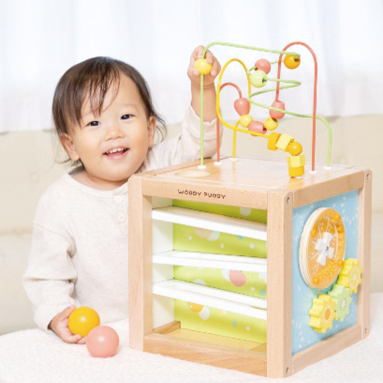 ●特徴:ボール転がしができるアクティビティボックスです。言葉を引き出す5つの知育あそびを一つにまとめました。つかまり立ちしたり、寄りかかっても倒れにくく安心して遊んで頂けます。●ブランド:神戸発の木製玩具ブランドです。使う人(大人、子ども)の声を大切にしてモノづくりをしています。子どもたちに木のぬくもりとやさしさを伝えたい、成長に合わせて長くあそんでほしい。そんなこだわりをパーツ1点1点に込めています。