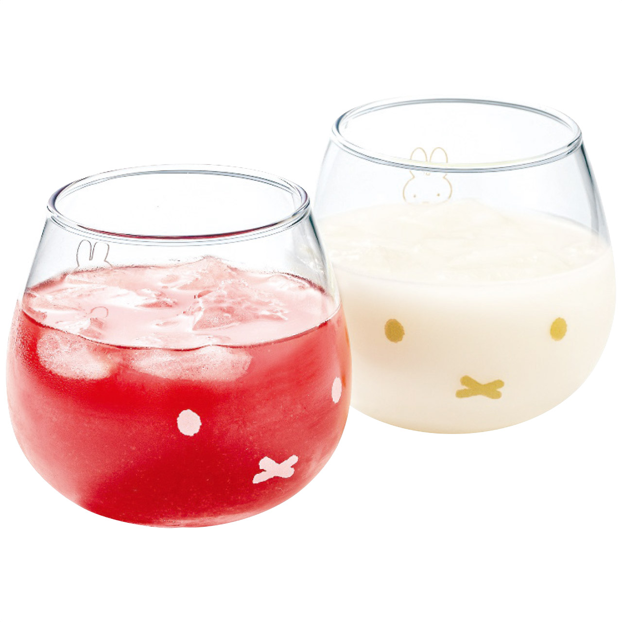 ゆらゆらと揺れる丸いタンブラーにミッフィーの顔をあしらったタンブラーのセットです。デザインには金色と銀色を使い可愛く華やかなミッフィーになりました。ブライダルの贈り物や、お誕生日のお祝いにもピッタリでおすすめ商品です。