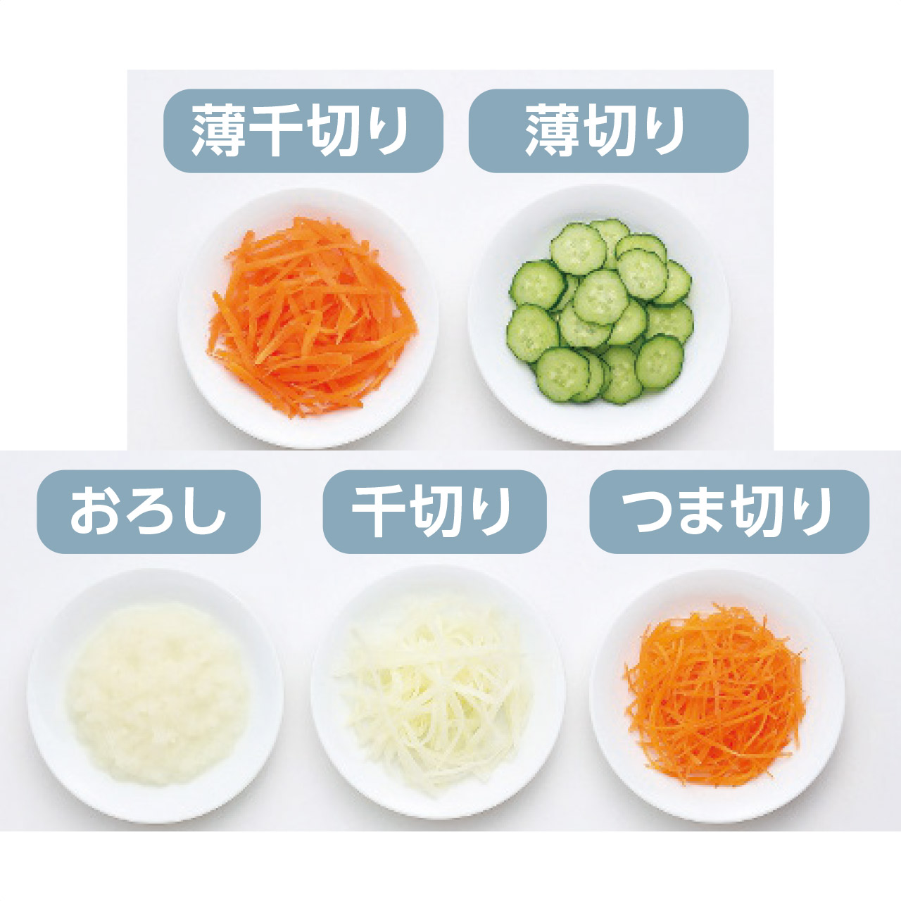 ■商品詳細 直径12.5cm高さ14cm容量900ml本体1個・ABS樹脂、ポリプロピレン、ポリアセタール・カッター(千切り、薄千切り、薄切り、つま切り、おろし)、チョッパーブレード、パドル、安全ホルダー、カッタープレート付・[中国製]