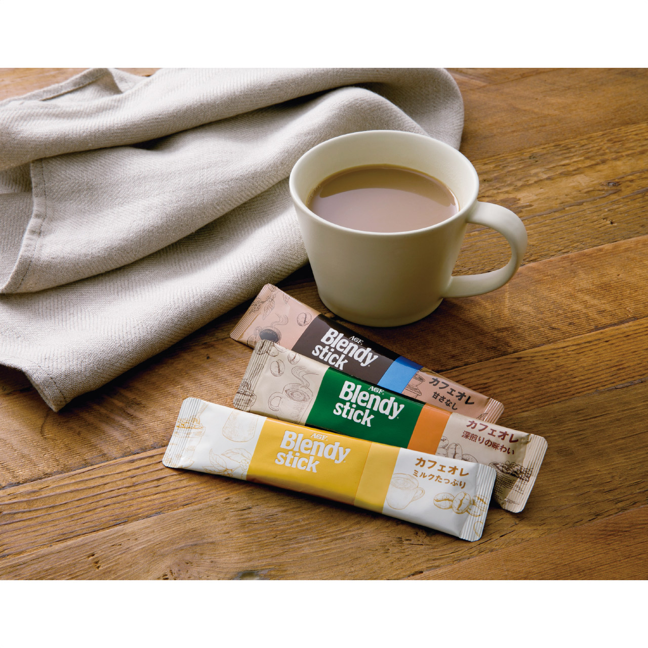 ■商品詳細 ブレンディスティック(カフェオレ14g×3本・カフェオレ(ミルクたっぷり14g×3本・甘さなし11.4g×2本)・ヘーゼルナッツオレ11g×2本)・賞味期間/製造日より常温約750日・[日本製]・【乳成分】