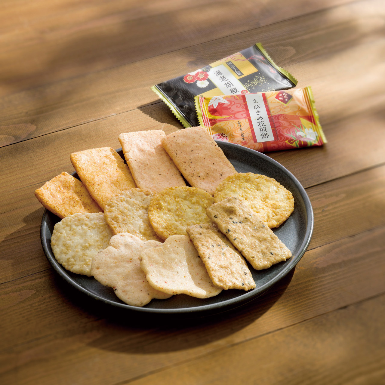 ■商品詳細 海老カレー煎餅・黒ごま入り玄米煎餅各14枚・えびまめ花煎餅10枚・海老胡椒煎餅9枚・つぶやきサラダ煎餅・金澤カレー煎餅各5枚・賞味期間/製造日より常温約120日・[日本製]・【乳成分・えび・ごま・大豆・豚肉】