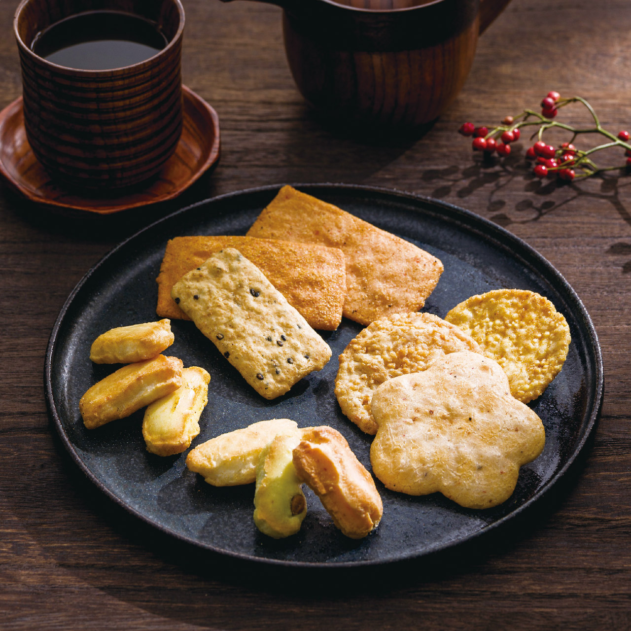 ふっくらサクサクのひとくちあられ。個性的な味と定番の味をベストバランスで詰合せました。缶ではなく箱にすることで廃棄の手間もなく置き場所もとりません。チャック付き袋でお手軽にいつでもおいしくいただけます。快適なライフスタイルにぴったりのおかきギフトです。