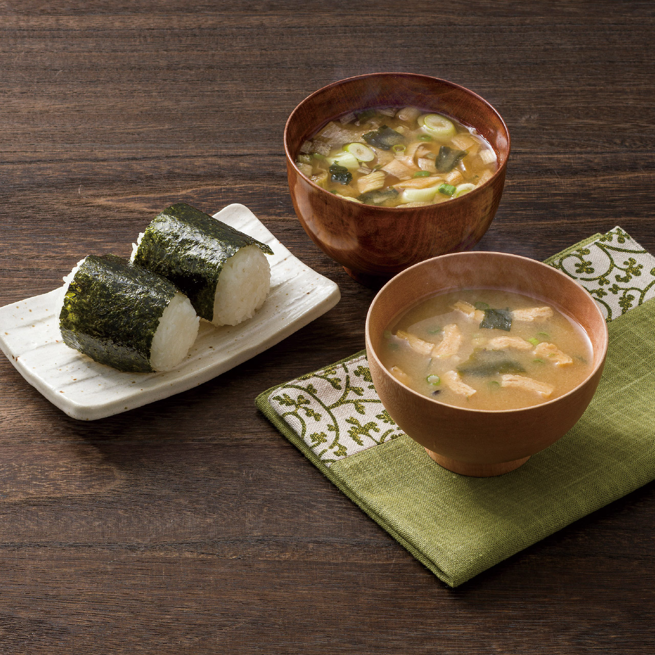 お湯を注ぐだけでできる本格的なお味噌汁に、和の食材、調味料をセット。