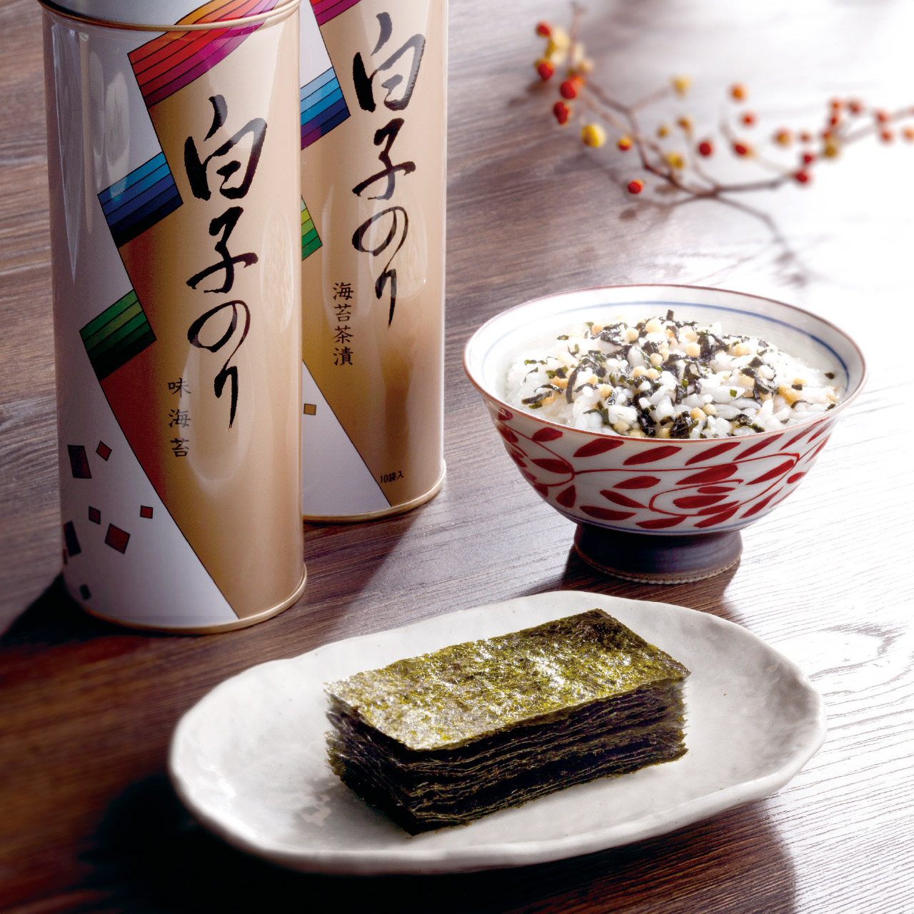 ■商品詳細 のり茶漬け(10袋)・焼のり(8切5枚12袋)各1缶・賞味期間/製造日より常温約1080日・[日本製]・【乳成分・小麦・大豆】