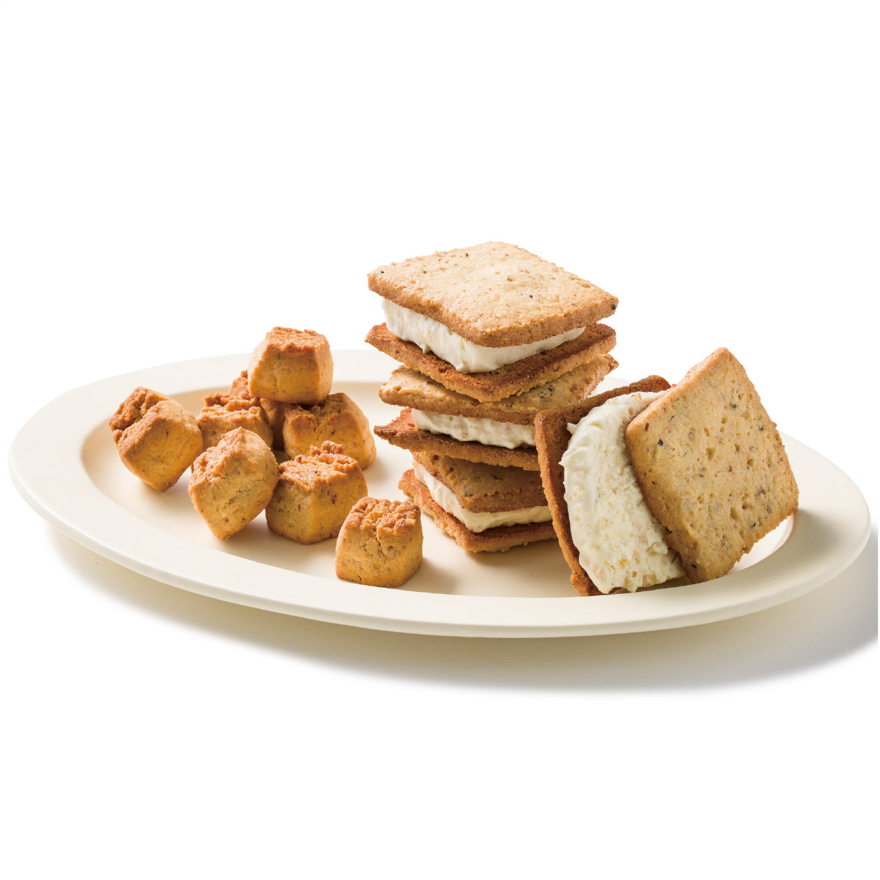 イタリア産の産直指定熟成チーズパルミジャーノ・レッジャーノ&ゴルゴンゾーラによるこだわりのチーズ菓子です。2種のチーズを生地に練りこみ、皮付きアーモンドを混ぜ入れております。皮の渋み、香ばしい風味が特徴のチーズポルボローネ。クッキー生地に2種の熟成チーズを練りこんで焼き上げたクリームチーズをサンドしたクッキー。2種類の焼き菓子を楽しめます。