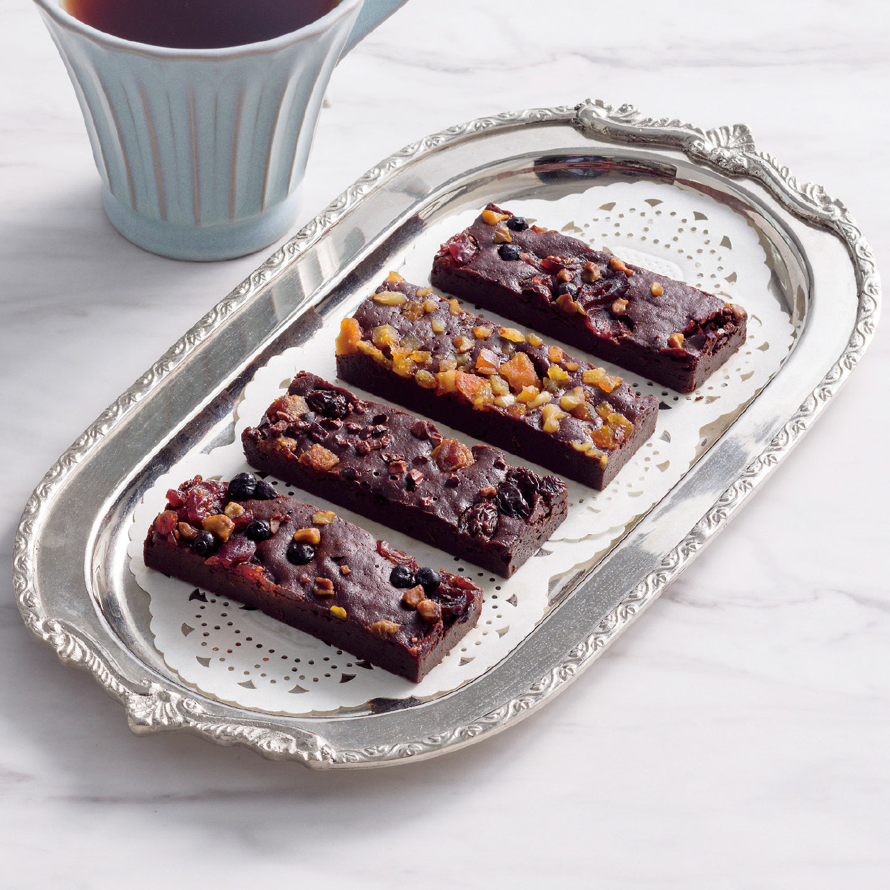 カカオ感あふれる、とろける口溶けの濃厚なチョコレートケーキ。厳選したフルーツと重なる贅沢な味わい。