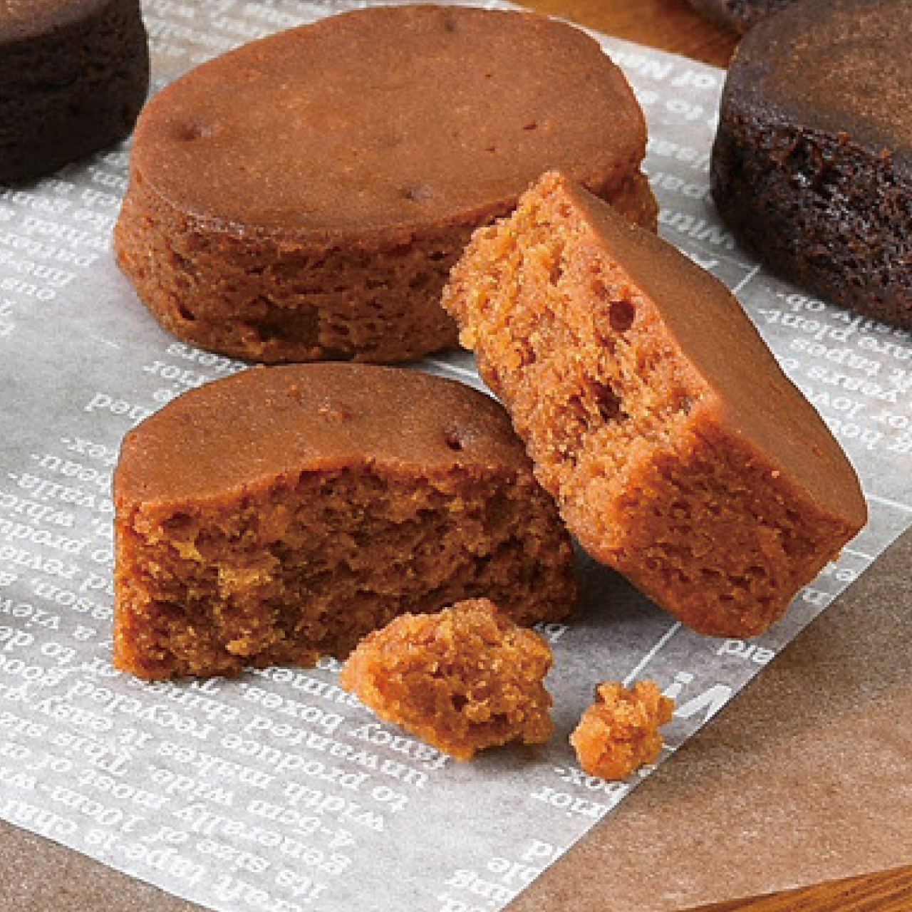 しっとり優しい食感のブラウニーです。カカオの香りをしっかりと感じる、大人な味わいの「ショコラ」と、まろやかでちょっぴりほろ苦い風味の「キャラメル」。2種類の味わいをお楽しみください。